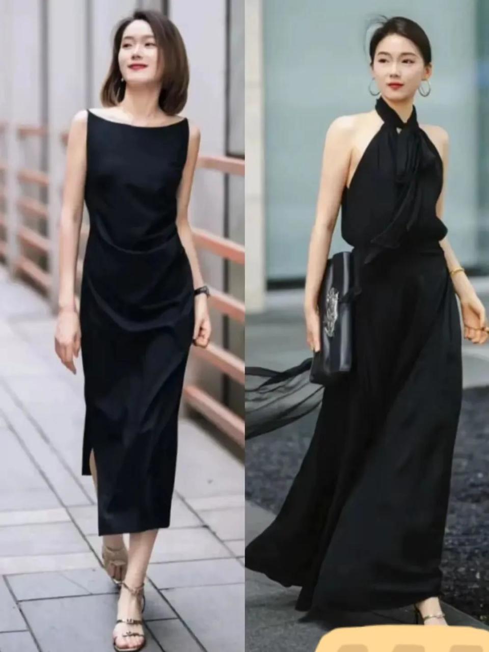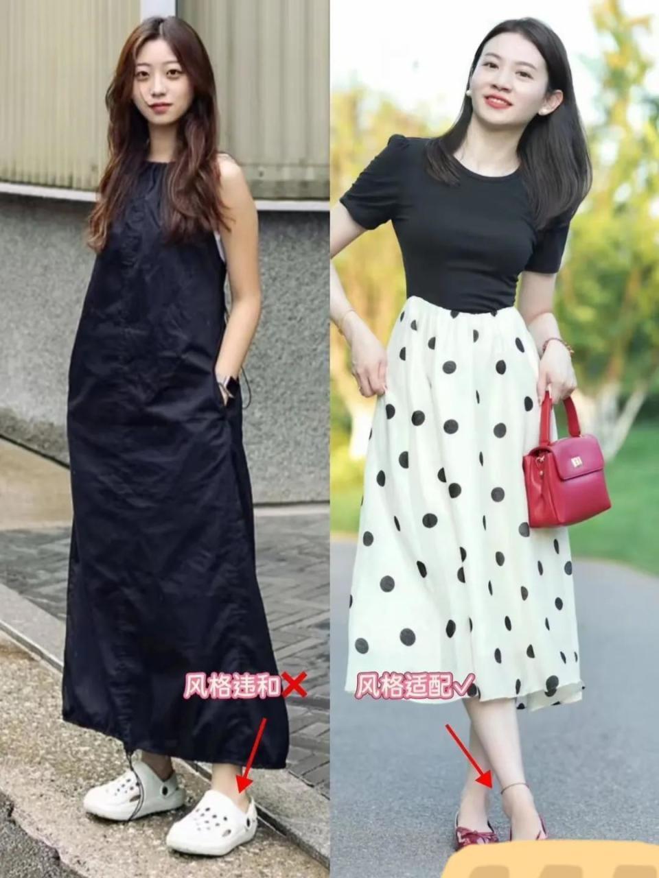 千万不要选择像下面这种漏孔的豆豆鞋,还搭配上了一款褶皱的黑色连衣裙,穿衣风格有违和感,而且不上档次。