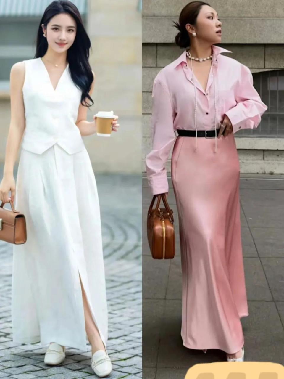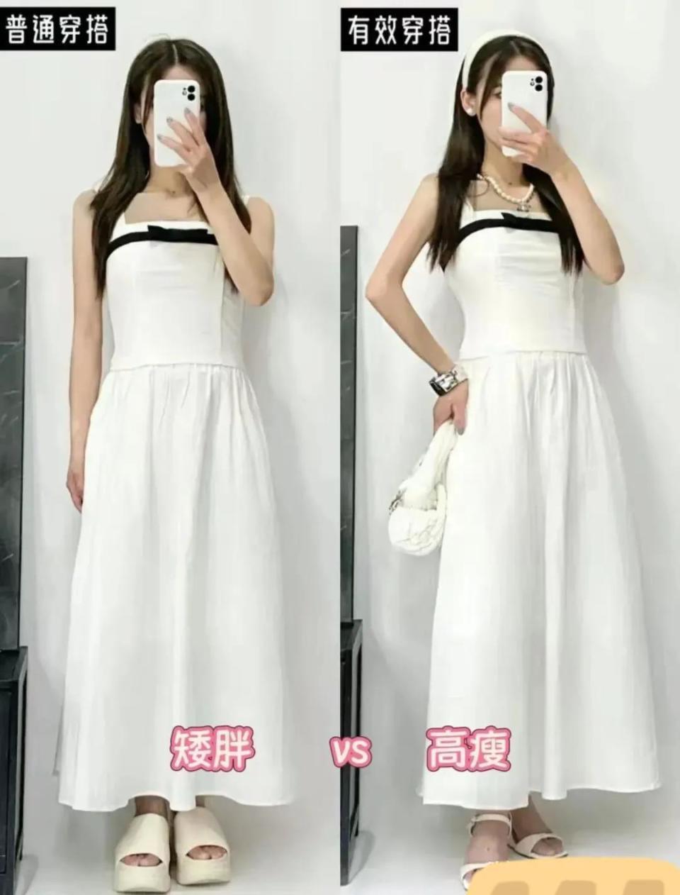 还不如选择一件白色的无袖马甲,搭配上白色的开叉伞状半身裙,脚上穿了一双白色的乐福鞋来的实在。
