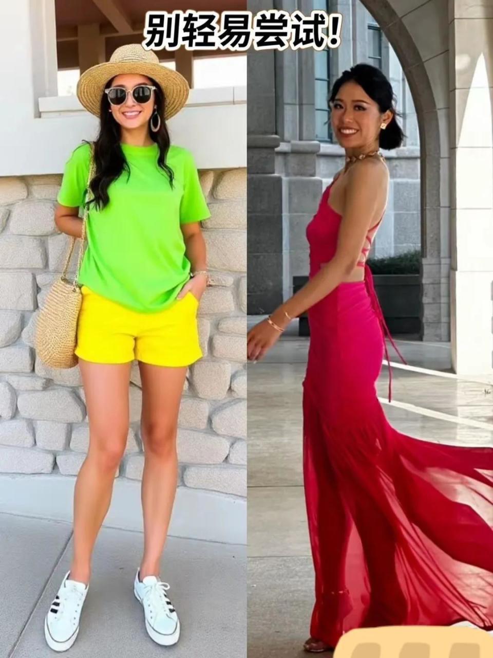 首先要明白什么样的衣服颜色,千万不要轻易尝试,例如下面这种荧光色,或者是颜色太亮了,太鲜艳了,尽量不要穿。