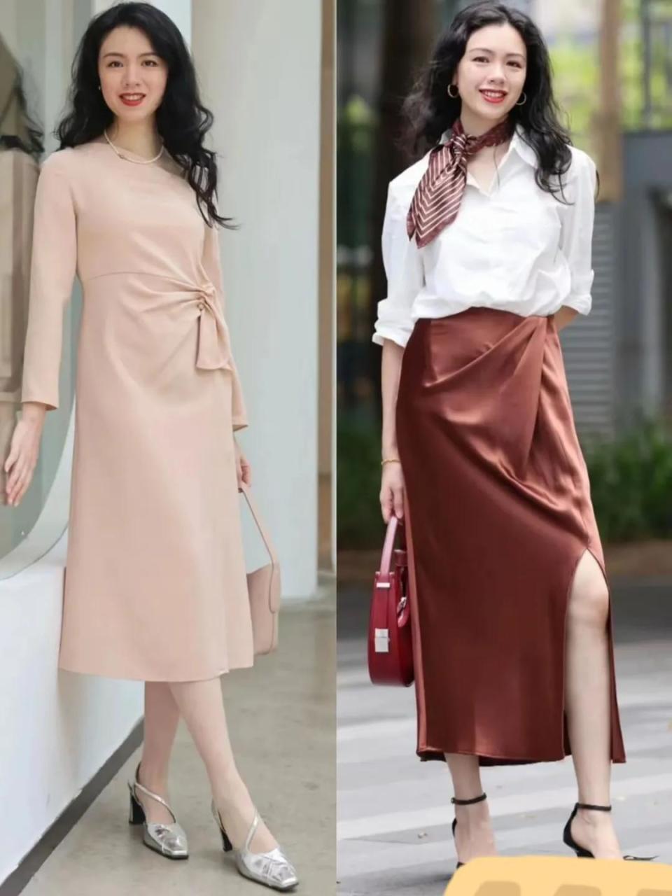 正常情况下来说我个人更推荐大家选择杏色的方领连衣裙来穿搭,能使得穿搭者秒变成邻家女孩,显得比较清纯。